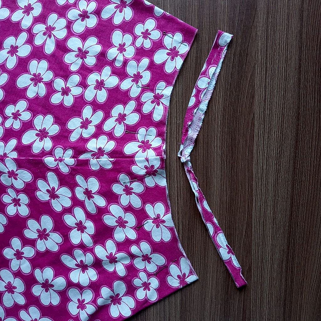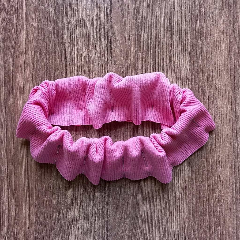 Пояс следует сложить пополам, лицевой стороной внутрь, сшить в кольцо по коротким срезам, а припуски шва - Pin-Up