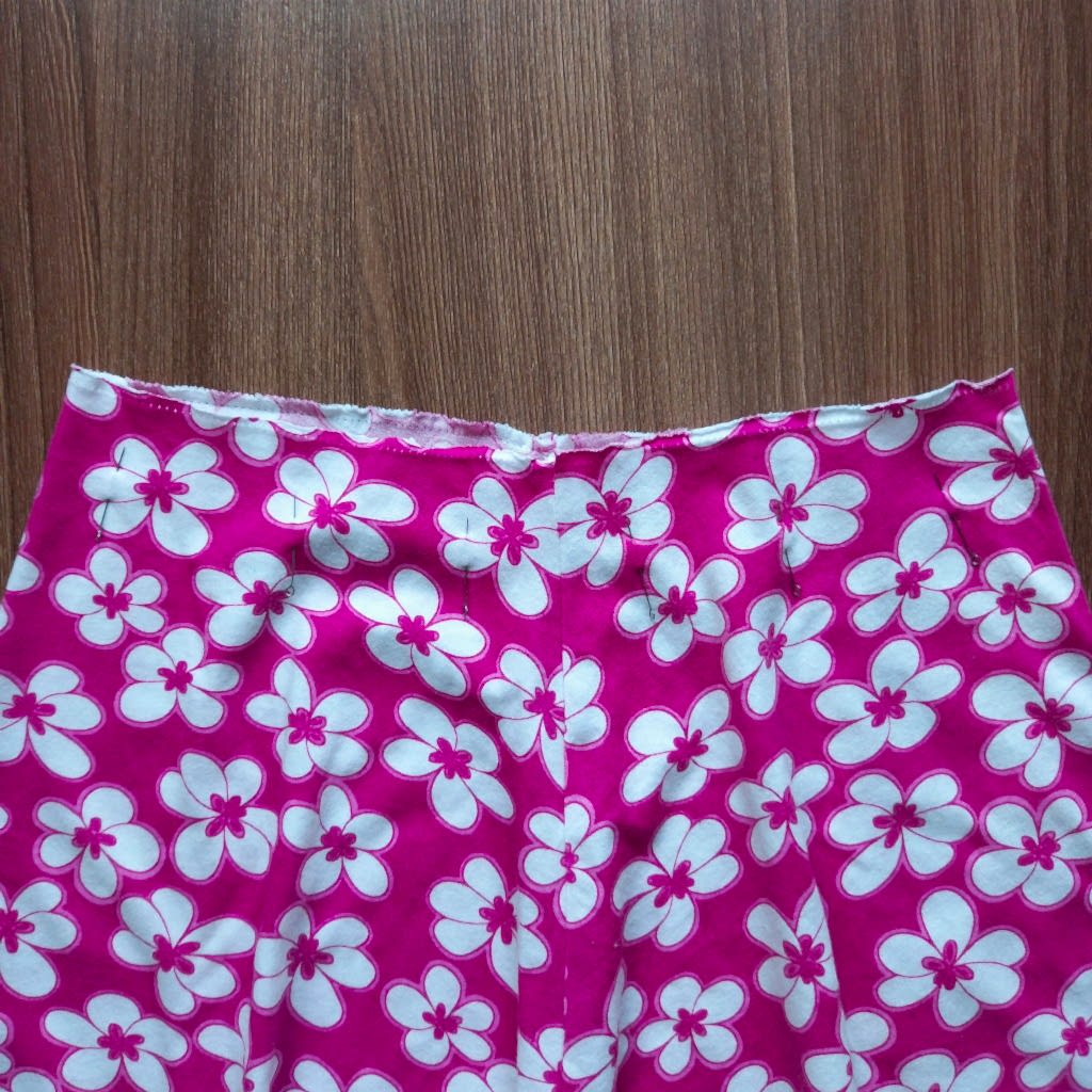 В таком виде Pin-Up нужно приметать к верхнему срезу юбки. Обратите внимание: в процессе выполнения операции пояс нужно немного растягивать